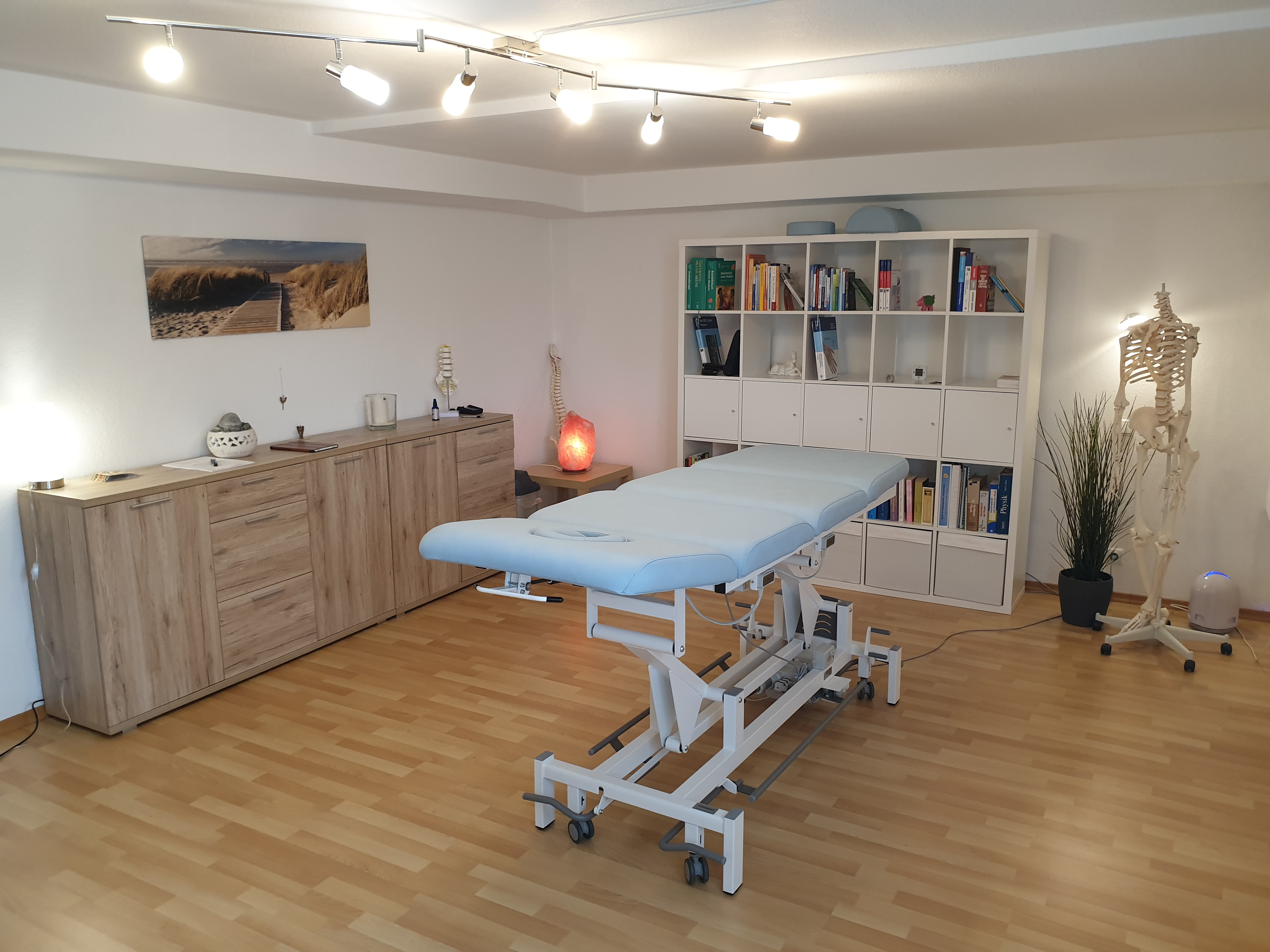 (Unser Therapie-Raum Nr. 1) Vor einer Behandung ist es wichtig eine genaue Anamnese (Krankengeschichte des Patienten) zu erheben. Dies ist wichtig um zu erfahren welche Grunderkrankungen, Vorerkrankungen und evtl. Kontraindikationen vorliegen. Damit Sie in Ruhe alle Informationen im Vorfeld zusammentragen können, bekommen Sie von uns einen Anamnesebogen zum Ausfüllen zugeschickt. Über die akutellen Datenschutzrichlinien klären wir Sie vorher persönlich auf. Die Therapie beginnt in der Regel mit der Korrektur des Beckenschiefstandes und damit der Beinlängendifferenz (diese liegt bei fast allen Menschen vor). Nach diesen ersten Korrekturschritten steht der Mensch auf einem geraden Fundament. Die Basis für die weitere Therapie der Strukturen, die auf den Beinen und dem Becken aufliegen ist somit geschaffen. Bei diesen Strukturen handelt es sich um die Lenden-, Brust- und Halswirbelsäule. Weitere Korrekturen sind häufig am Kiefergelenk, den Schultern sowie den Schlüsselbeinen und den Rippen notwendig. Die Extremitäten also Ellenbogen, Hand und Fingergelenke werden in der Regel anschließend behandelt, insofern dies notwendig ist. Die Beinlängendifferenz ist im Prinzip mit einer Verkippung des Beckens gleichzusetzen, zumindest hängt sie häufig mit einem Beckenschiefstand zusammen. In diesem Fall verläuft die gedachte Verbindungslinie zwischen den beiden Hüftgelenken nicht parallel zum Untergrund. Physiologisch steht das Kreuzbein und damit auch die oberen Teile der Wirbelsäule senkrecht auf dieser gedachten Verbindunglinie der Hüftgelenke. Wenn nun diese Verbindunglinie schräg verläuft, so weicht zwangsweise auch der Wirbelsäulenverlauf von seiner physiologisch vertikalen Richtung ab. Die theoretische Folge wäre, dass der Mensch ohne Kompensationsreaktion in eine Schieflage mit seinem Oberkörper geraten würde, also nach links oder rechts wegkippen würde. Die vielen Gelenke zwischen den Wirbeln kompensieren aber dieses Problem, so dass es im oberen Teil der Wirbelsäule zu einem entgegengesetzten Verlauf der Wirbelsäule kommt. Bei chronischen Verläufen führt dieses zu einer Skoliose bzw. Bandscheibenvorfällen. Nach einer Behandlung kommt es, auf Grund der teilweise grundlegenden Veränderung der Statik, häufig zu einem Muskelkater. Dieser vergeht dann meist nach 2-3 Tagen, hält aber teilweise auch bis zu einer Woche an. Die größte Umstellung erfährt der Bewegungsapparat in der ersten Therapiesitzung, da dort die Abweichung zu der angestrebten Null-Null-Symmetrie am größten ist. Im Unterschied zu vielen klassischen Therapien im Bewegungsapparat bezieht "Die Therapie im Bewegungsapparat" neben dem skeletteren-System auch das Muskelgewebe, Faszienstrukturen, das Cranio-Sacrale-System, das Nervensystem, die Organssysteme und das Energiestystem mit ein. Durch den individuellen Therapieabstand der einzelnen Therapiesitzungen werden dann die Problemstrukturen Schicht für Schicht wie bei einer Zwiebel von Außen nach Innen abgebaut. Dieser Prozess verfolgt das Ziel eine Null-Null-Symmetrie des gesamten Bewegungsapparates wieder herzustellen. Die Behandlungsdauer selbst ist individuell vom Patienten, seinen Beschwerden und seinen statischen Veränderungen abhängig. Hinzu kommt das Erklären und Erlernen von speziellen Selbsthilfeübungen. In der Regel muss man für eine komplette Therapiesitzung 30 Minuten bis zu zwei Stunden einplanen.